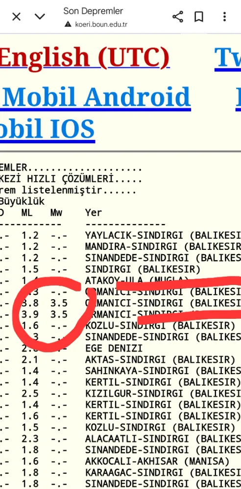 Afet ve Acil Durum Yönetimi Başkanlığı (AFAD) Deprem Dairesi verilerine göre, saat 20.58'de merkez üssü Balıkesir'in Sındırgı ilçesi olan 3.8 ve 3.9  büyüklüğünde deprem meydana geldi.