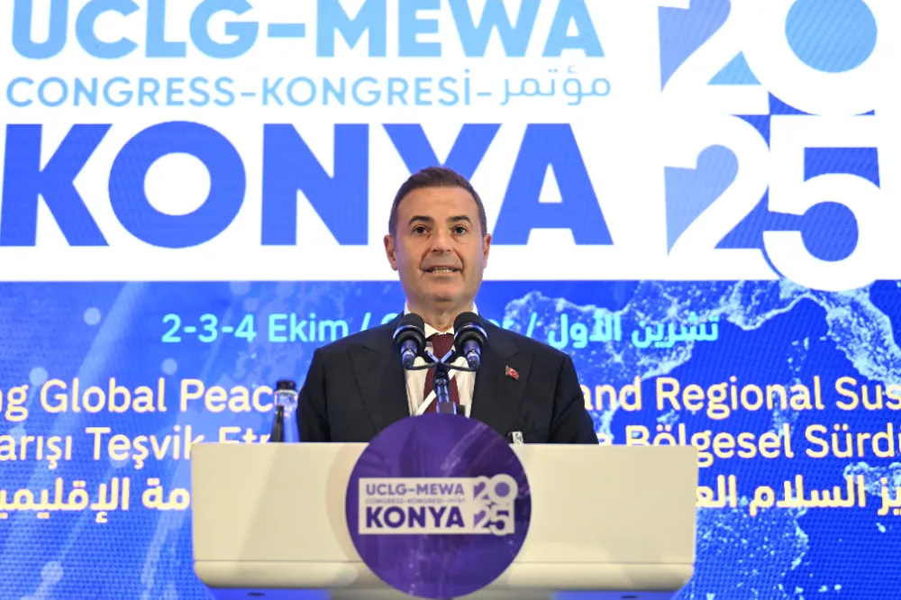 UCLG Dünya Teşkilatı Başkan Yardımcısı ve Balıkesir Büyükşehir Belediye Başkanı Ahmet Akın, Konya Büyükşehir Belediyesi ev sahipliğinde düzenlenen Birleşmiş Kentler ve Yerel Yönetimler Orta Doğu ve Batı Asya Bölge Teşkilatının (UCLG-MEWA) 2025 Kongresi’ne katıldı. UCLG-MEWA’nın 20 yılı aşkın süredir bölgede yerel yönetimlerin dayanışmasını güçlendiren, küresel gündemleri yerelleştiren ve yerelin sorunlarını küresel platformlara taşıyan güçlü bir teşkilat olduğunu söyleyen Balıkesir Büyükşehir Belediye Başkanı Ahmet Akın, düzenlenen kongrenin sadece bir idari toplantı değil; aynı zamanda şehirlerin geleceğine dair ortak aklın ve vicdanın buluşma noktası olduğunu söyledi.