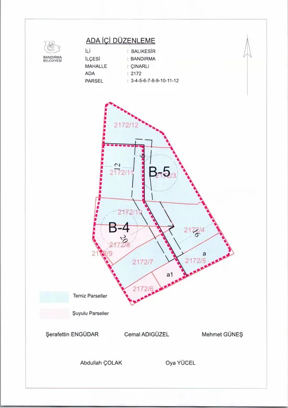 Bandırma Belediyesi Encümeni'nin 26 Kasım 2025 tarih ve 1311 sayılı kararı ile, Çınarlı Mahallesi, 2172 ada, 3-4-5-6-7-8-9-10-11-12 numaralı parsellere ait ada içi düzenlemesinin, 1/1000 ölçekli Bandırma Uygulama İmar Planı notlarının 164. maddesi ve 3194 sayılı İmar Kanunu'nun 19. maddesi gereği onaylanmasına,